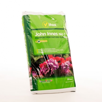 Made from soil, grit and other compost materials. The number refers to the nutrient content, and Number 3 is the most fertile blend of John Innes Compost. John Innes composts are heavier than non-loam-based composts, dry out less and retain nutrients longer than ordinary peat-based composts. Not suitable for lime-hating (ericaceous) plants. 20 litre bag. Please note, items displayed on this website may not be available in each of our shops. (M, A)