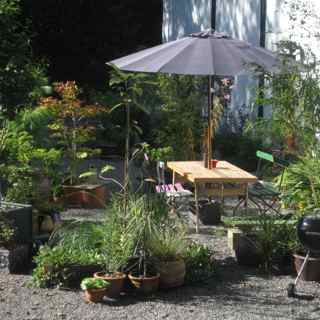 But we have trees such as Ginkgo, hornbeam, beech, banana, Japanese maple, Magnolia and pine, as well as bamboos, herbs, and perennials such as Agapanthus and Crocosmia. All these plants thrive in containers, and some do better than they do in the ground, because you have absolute control of their soil.
