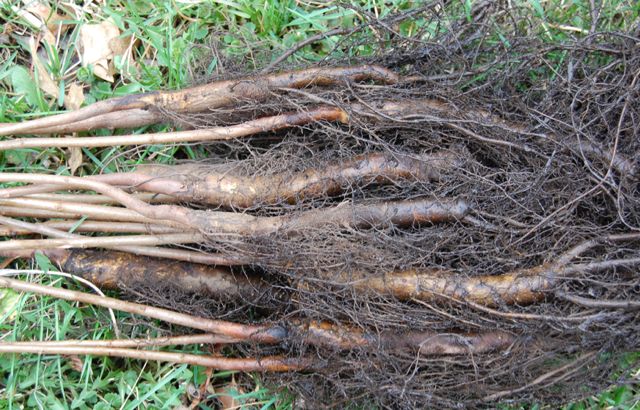 Storing bare root plants: Drying out is the biggest threat to bare root plants. When you receive your bare root plants they will be in strong black plastic bags and tightly tied to keep in moisture. They can stay in these for a few days, but if it will be any longer then they should be heeled into the ground (ie planted out in their bundles and firmed in). The bags should be stored somewhere cool and dark such as an unheated shed or cellar. A small amount of water can be sprinked into them to keep roots moist. They should never be allowed to dry out, and it's very important that on the day of being planted they stay in their bags until the last possible minute. The bags can have an addition of water added to them to keep the roots moist - they should no be left unbagged where winds can dry out roots in minutes. Once plants have been delivered safely to you, we can take no responsibility for their welfare.