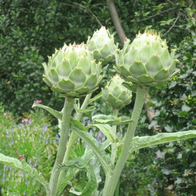 A delicious, easy-to-grow and attractive vegetable. Plant in most soils and harvest the vegetables in summer. Boil in lightly salted water and eat the fleshy part of the leaves dipped in melted buter or Vinagrette. And if you don't remember to pick the artichokes, let them stay on the plant and allow them to flower. Plants sold in 2L pot.