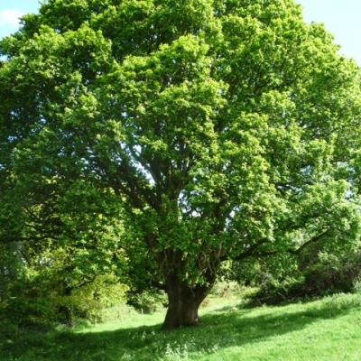 Grown with certified Irish provenance. Without doubt, the king of native trees in these islands. Adaptable to most conditions, the oak can grow to 25m x 25m, but prefers moist, humus-rich soil. After planting, top-dress the soil with leaf-mould, bark mulch, manure or garden compost. Not suitable for smaller gardens, but ideal for avenues, farms, hedgrows or estates, this plant can support up to 400 species of insects, animals, fungi etc, supply kindling and wood for burning, and have the classic rounded tree shape so characteristic of our countryside. Can live up to one thousand years old. To get an idea of scale, in the image look careully to see the person under the tree.