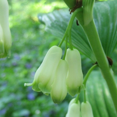 A beautiful perennial with nodding, creamy white flowers in spring and and early summer. The flowers are held on gracefully arching stems. This plant grows best in shade and, once established, is very tough, long-lived and easy to grow. Ideal for an ornamental woodland garden. It disappears completely into the ground in autumn, and new shoots appear in the spring. Mullch with leaf mould or well-rotted manure.Young plants in a small 9cms pot.