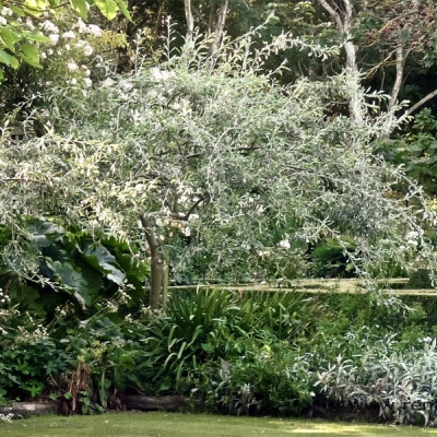 The weeping silver pear is a small, silver-leaved tree that has white flowers is late April and May. It is a hardy, tough little tree that is well-suited to urban or suburban gardens. The silver foliage and white flowers make it a good candidate for planting with other white or silver perennials and shrubs. It has the benefit too of responding well to clipping - it is sometimes clipped into a lollipop-shaped 'standard'. Left to its own devices it makes a small tree approx 4 metres in height and up to 4 metres across. Suited to most soils types, including alkaline soils, and to most locations, it is a deservedly popular tree. 7-8ft tall plants. Plants displayed on this website may not be available in each of our shops.