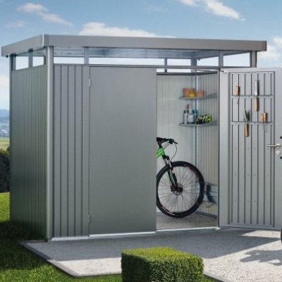 The term 'garden shed' doesn't seem fair to use for the Biohort 'HighLine'. We have been supplying Biohort sheds in Ireland for over 5 years and can answer all your queries, as well as recommend an excellent fitting service and manage your order smoothly. Made in Austria to the same exacting quality, design and materials of all Biohort sheds, this secure metal shed comes in 5 sizes and 3 colours (metallic quartz grey, metallic silver, metallic dark grey). With a 20 year manufacturer's guarantee on the metal panels, it comes with integrated roof gutter, a secure 3-way lock, stainless steel fixings and hinges. Accessories available include bike racks, shelves, floor frame, ground screw foundations, side door, single/double door, floor panels, storage solutions etc. Highline display model in our Airfield (H2) and our Monkstown (H4) shops.