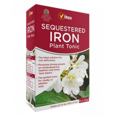Sequestered iron prevents and corrects yellowing and poor growth of ericaceous plants like heathers and rhododendrons. It supplies the correct nutrients for healthy plant growth including magnesium, manganese and iron.