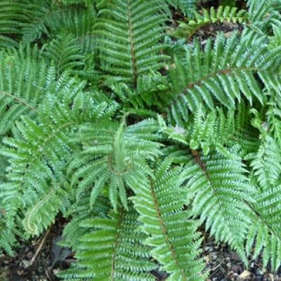 An evergreen fern forming a "shuttlecock" of spreading, glossy dark green, bipinnate fronds. In spring the young fronds are yellowish-green, more erect and covered with golden scales. It likes a shady position in humus-rich well drained soil. Maximum height up to 1m. 2L pot. Please note, items displayed on this website may not be available in each of our shops.
