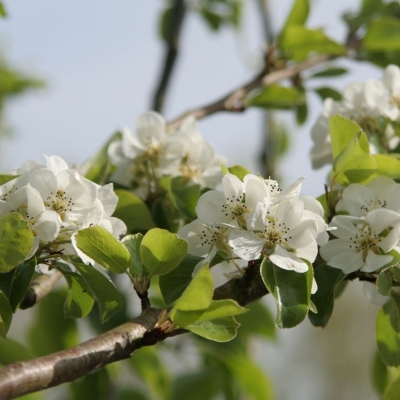 A wild variety of the 'garden pear', which is a good hedgerow or boundary tree, or also a fine specimen tree. Not native to Ireland, but to central and eastern Europe, it grows well here. Attractive white flowers in spring, edible fruit in summer and excellent Autumn colour. It makes a very useful wildlife tree, provide flowers for bees and fruit for birds, as well as many insects on the foliage which also provides food for birds. The timber is useful for chopping boards and kitchen implements. Long lived - can grow up to 12 metres in height.