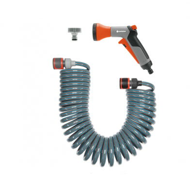 An innovative hose that coils back up after watering. Ideal for watering plants anywhere from a patios to pots on balconies. Includes hose connector and water stop, sprayer and threaded tap connectors. 10m spiral hose and connectors by Gardena. Please note: items displayed on this website may not be in stock in each of our shops.