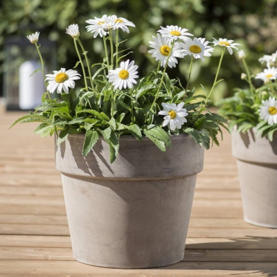 This Calima pot has a wide base and rim making it very sturdy even in high winds. It is subtly different from most other flower pots because of its earthy colour. This classic natural clay terracotta pot is made in Germany and is a different shade of clay from the more commonly used red and is fully frost hardy to -25°. Matching saucers available. Prices from €13.95-€23.95. Please note, items displayed on this website may not be available in each of our shops.