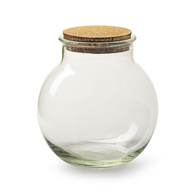 A spherical glass terrarium with a cork lid. A successfully planted terrarium can thrive unattended for more than 50 years. For this terrarium you will just need to add the other 'ingredients' such as plants, compost, grit etc, which are available in our shops too. Because it is made from glass, this item cannot be shipped, but is generally available in our 3 shops. Please call first to check it's in stock.