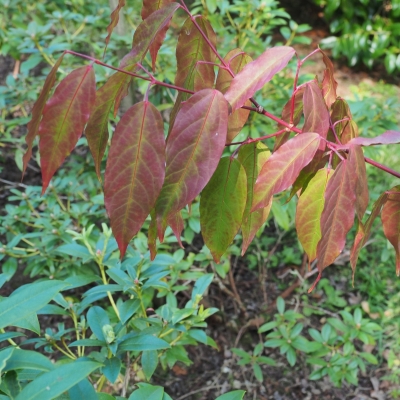 A rare specimen maple with evergreen leaves. Its long, young leaves are pink-red at first, turning green in summer, with pinkish yellow tints. The bark is smooth and a beautiful olive green with brown veins. It is fast growing and pyramidal is shape. A great specimen tree in a garden, where it will be a beautiful focal point. Best grown with some shelter from cold winds and hard frost, as it can be semi-evergreen in extreme cold. 6ft tall plants. Only available in our Dunboyne shop. Although generally in stock, they may be sold out at the time of your visit.