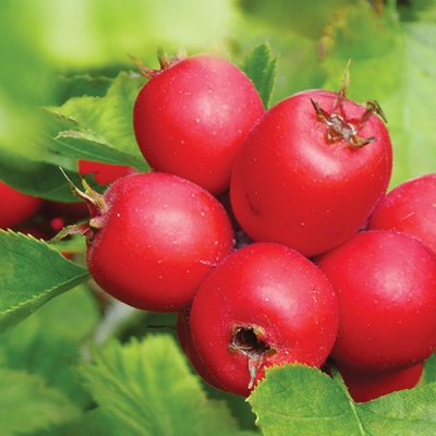 A rare small tree with much bigger fruit (haws) than our native hawthorn. It has clusters of lightly fragranced white flowers in spring followed by masses of large drooping crimson-red fruit nearly the size of crab-apples. They can last well into winter, if they are not eaten by wildlife first. The dark green leaves turn a beautiful orange in autumn. Eventual height 6m. 5-6ft tall trees. Plants displayed on this website are not necessarily in stock in each of our shops.
