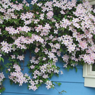 A vigorous clematis that can easily cover a wall or grow through a hedge, this spring-flowerting variety has large, simple, pink flowers taht are also deliciously fragarant. As with most clematis, it prefers moist but well-drained soil and sun or lights shade. 2 litre pot, plants 60-80cms tall.