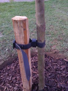 • Stakes should not be too tight - there should be room for the tree to sway in the wind. Check tree stakes regularly, as trees grow, and damage is often caused to the tree from ties that are too tight.